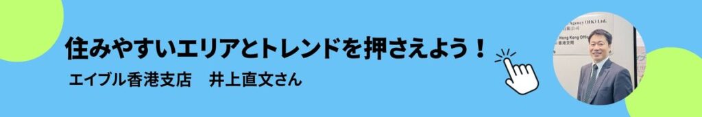 「弊社は日系エージェントとして長年日本人駐在員とファミリーを支えてきました」というのはエイブル香港支店の井上直文さん。住まい探しに頻出するエリア名と特徴を上げていただきました。