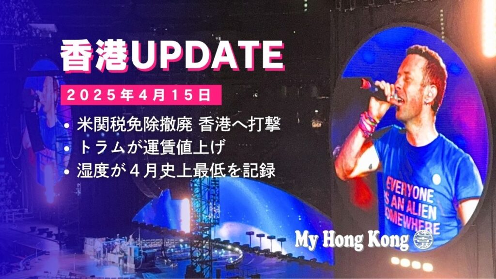 イギリスのバンド、コールドプレイは4月8,9、11,12日の4日間コンサートを行った。啓徳スタジアムでは初めての海外アーティストの公演で、4日間ともソールドアウトとなった。 米関税免除撤廃、香港への打撃と政府対応 トランプ米政権は、中国本土と香... -