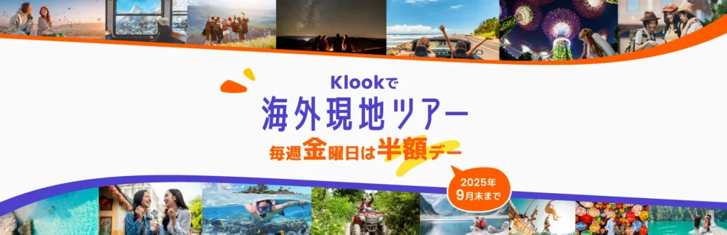 9月末まで!Klookで海外現地ツアー 毎週金曜日は半額デー