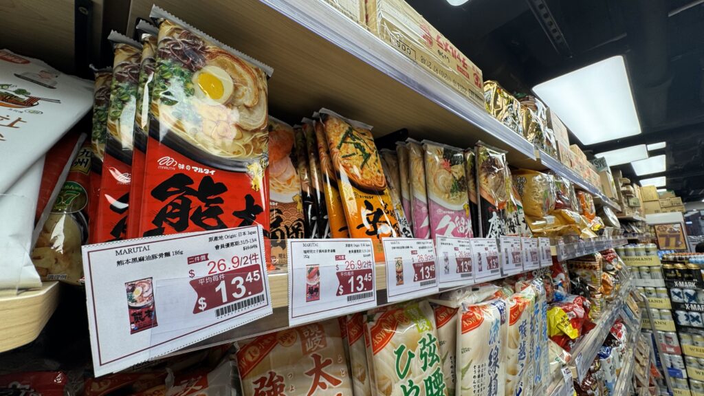 ありました! 数ある麺商品の中、定番の「マルタイご当地棒ラーメン」シリーズとともに、「香港2大フレーバー」もしっかり置いてあります!