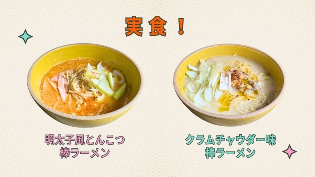 香港2大フレーバー、人気とはいえ「明太子」「クラムチャウダー」は、ラーメンの定番からは少し離れている印象ですよね。そこで、759阿信屋さんで購入した2つのフレーバー「明太子風とんこつ棒ラーメン」と「クラムチャウダー味棒ラーメン」を実食しました!