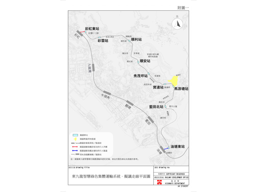 政府が計画する油塘駅から彩虹駅間の丘陵地をつなげる「東九龍スマートグリーン輸送システム」は、当初計画から1駅増え、全9駅になることが発表されました。新たに追加された「藍田北駅」は、馬游塘と油塘東間に設置され、周辺住民数万人の交通利便性を向上。さらに、各駅と近隣施設を接続する歩行者通路の増設も盛り込まれ、利便性が強化されました。また、馬游塘駅の車庫上部には住宅約8,900戸や商業施設が建設される予定。この計画により、地域の交通アクセス改善に加え、住環境や商業活動の活性化が期待されます。プロジェクトは2027年に契約締結、2033年までの開通を目指して進められています。(RTHK)