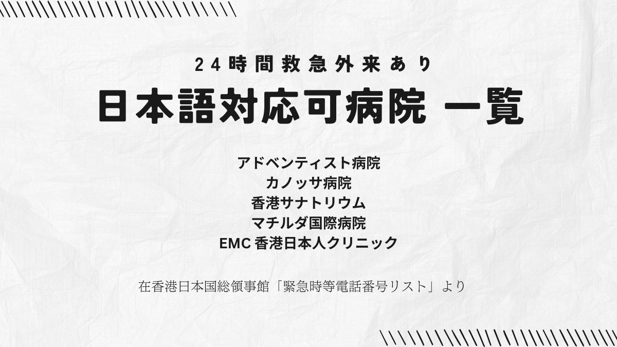 ※本リストにおいてのご利用規約、及び注釈は下記リンクの在香港日本国総領事館の「緊急時等電話番号リスト」内の記載をご参照ください。